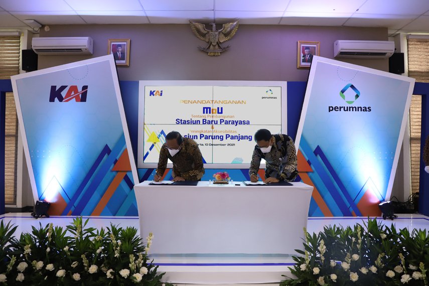 Penandatanganan MoU ini dilakukan antara Direktur Utama Perum Perumnas, Budi Saddewa Soediro dan Direktur Utama PT KAI (Persero), Didiek Hartantyo hari ini, Jumat (10/12/2021) di JRC, Jakarta.