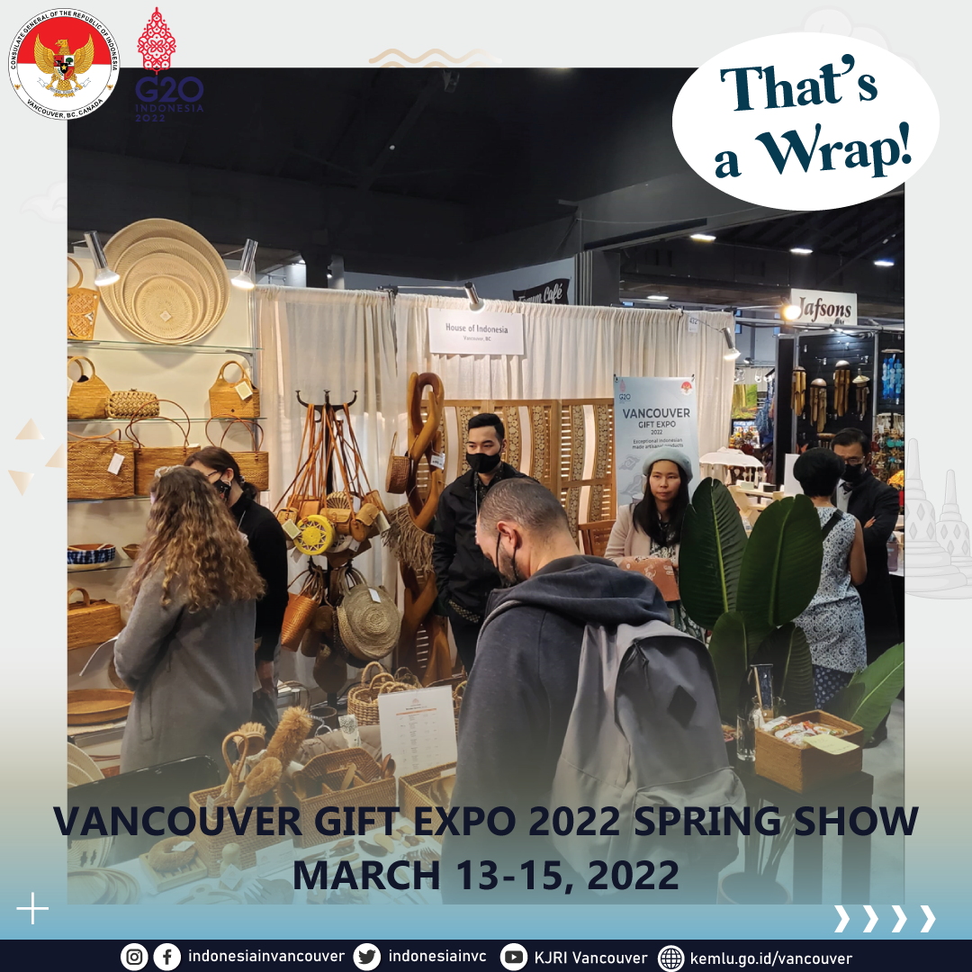 Pingintau.id, Vancouver, Kanada – Para pengusaha dan diaspora Indonesia di provinsi British Columbia turut menampilkan produk-produk terbaiknya pada “Vancouver Gift Expo Spring Show” yang diselenggarakan di Vancouver, Kanada (13-15/03/2022).