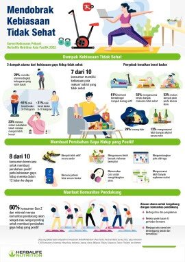 Pingintau.id, HONG KONG SAR – Perusahaan nutrisi global terkemuka, Herbalife Nutrition menemukan temuan dari Survei Kebiasaan Pribadi Asia Pasifik pada hari ini, mengungkapkan bahwa 8 dari sepuluh konsumen di kawasan Asia Pasifik ingin kebiasaan hidup tidak sehat yang mereka selamat pandemi. Secara khusus, menerapkan pola makan yang tidak seimbang (53%), tidak berolahraga secara teratur (53%), dan kurang tidur (52%) adalah tiga kebiasaan teratas yang akan mereka lakukan dalam rencana 12 bulan ke depan.