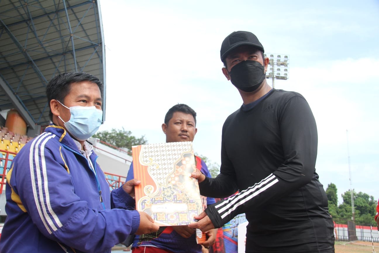 Pingintau.id, Persatuan Wartawan Indonesia (PWI) Kabupaten Musi Banyuasin menutup rangkaian kegiatan Hari Pers Nasional (HPN) dan Hari Ulang Tahun PWI ke-76 di Stadion Serasan Sekate dengan pertandingan persahabatan sepakbola dengan Jajaran Polres Muba, Jumat (25/2/2022).