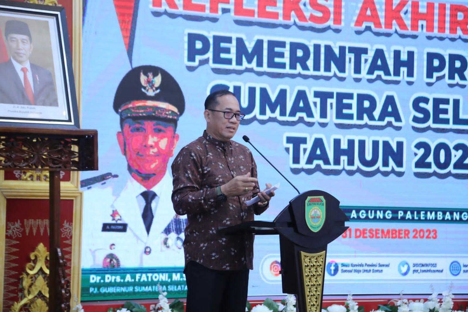 Hal itu diungkapkan oleh Penjabat (Pj) Gubernur Sumsel Agus Fatoni dalam kegiatan ‘Refleksi Capaian Kinerja Pembangunan Provinsi Sumsel Tahun 2023’ yang digelar di Griya Agung Palembang, Sumatera Selatan, Minggu (31/12/2023).