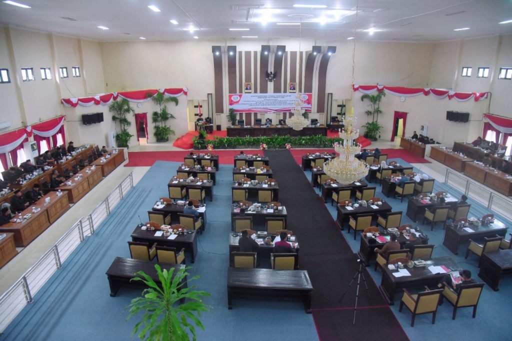 Pingintau.id – Bupati Banyuasin H. Askolani hadiri Rapat Paripurna DPRD dalam Rangka Penandatanganan Rancangan KUA-PPAS, Penyampaian Nota Pengantar atau Penjelasan Tentang Rancangan APBD, Penyampaian Pandangan Umum fraksi-fraksi DPRD Kabupaten Banyuasin.