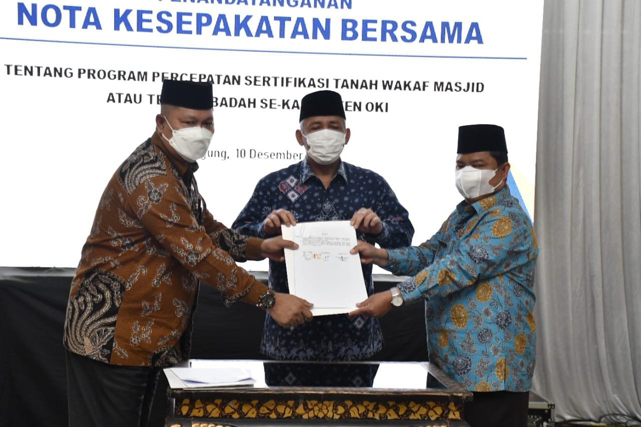 Pingintau.id, Kabupaten Ogan Komering Ilir (OKI) mempercepat Sertifikasi Tanah Tempat Ibadat melalui program percepatan sertifikasi tanah wakap masjid.