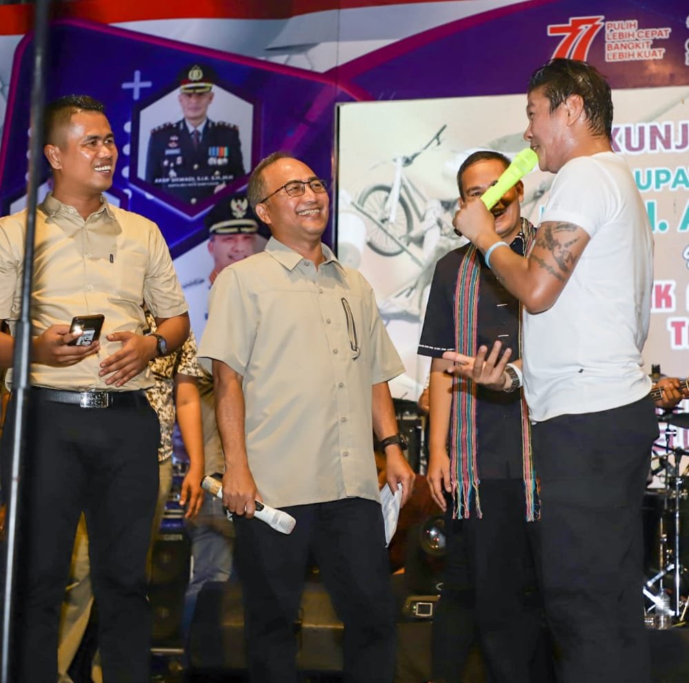 Pingintau.id, Lirik lagu berjudul Cinta Sampai Mati milik Kangen Band tersebut membuat ribuan warga Keluang ikut bersenandung, ketika Pj Bupati Muba H Apriyadi bersama Andika Mahesa vokalis Kangen Band memeriahkan malam puncak HUT RI ke-77 di Halaman Mapolsek Kecamatan Keluang, Selasa (30/8/2022) malam.