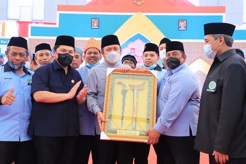 Pingintau.id – Ketua Umum Masyarakat Ekonomi Syariah yang juga merupakan Menteri BUMN RI H. Erick Thohir dan Gubernur Sumatera Selatan (Sumsel) H Herman Deru didampingi Ketum DPP BKPRMI, Said Aldi al Idrus dan Ketua BPKPRMI Sumsel Firdaus secara resmi menutup Festival Anak Soleh Indonesia (FASI) XI Tingkat Nasional Tahun 2022 yang ditandai dengan penekanan tombol sirine bertempat di Main Dinning Hall Jakabaring Sport City (JSC) Palembang, Minggu (27/3) pagi.