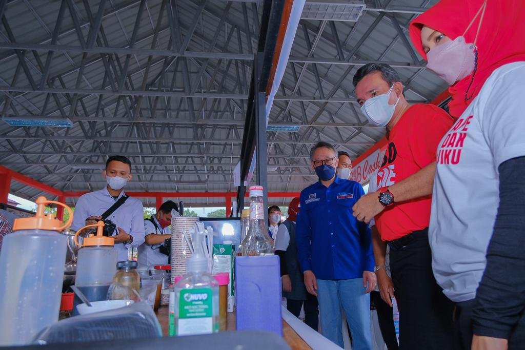 Pingintau.id, Plt Bupati Musi Banyuasin (Muba) Beni Hernedi meresmikan Pusat Jajanan Sekayu (PJS), berlokasi di kawasan Taman Gelanggang Remaja Sekayu, Kamis (23/12/2021). Peresmian PJS ditandai dengan pengguntingan pita oleh Wakil Ketua I TP PKK Muba Susy Imelda Beni.