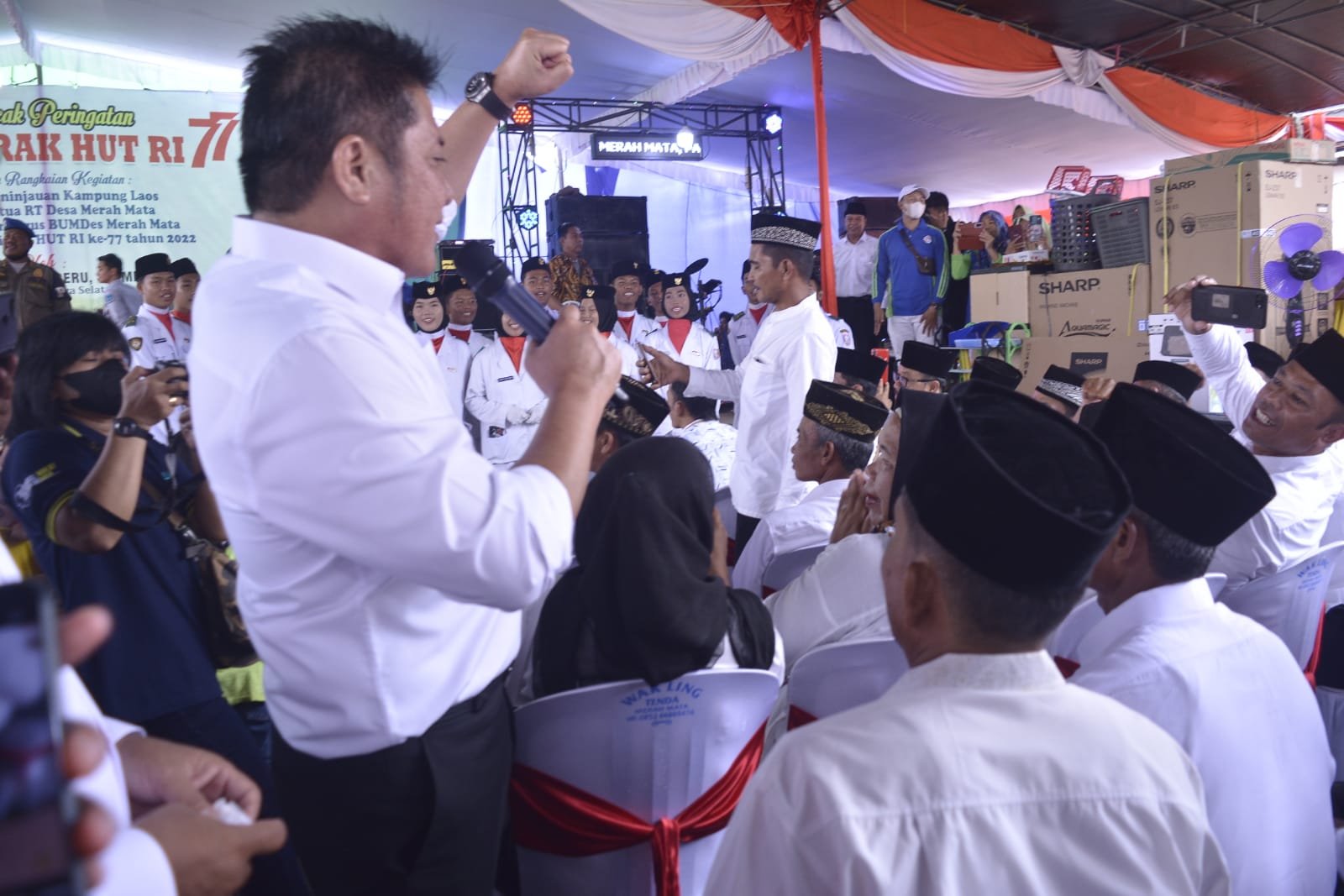 “Isi kemeredekaan ini dengan kegiatan yang produktif yang bisa memajukan daerah. Yang terpenting adalah tidak boleh hidup secara individualis. Kita harus saling bahu membahu dan gotong royong untuk membangun daerah ini khususnya Desa Merah Mata sehingga masyarakatnya semakin sejahtera,” paparnya.
