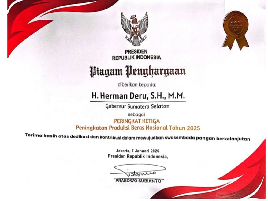 Ia menambahkan, keberhasilan ini menunjukkan bahwa Sumsel tidak hanya menjadi penyangga pangan, tetapi juga penggerak utama produksi nasional.