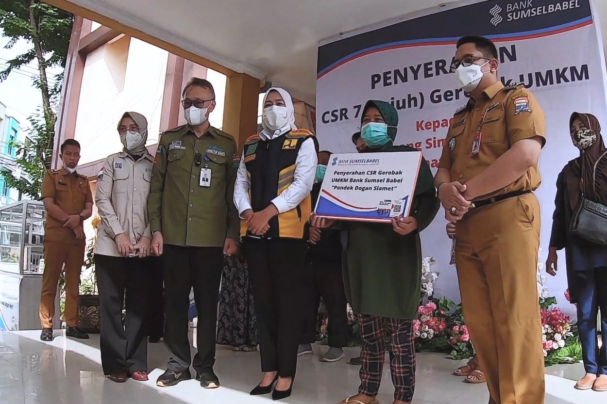 Saat memberikan bantuan gerobak kepada 7 UMKM pedagang simpang dogang. Wakil Walikota Pelembang Fitrianti Agustinda sangat berterima kasih atas bantuan CSR dari Bank Sumsel Babel yang telah berperan membantu masyarakat kecil. Seperti halnya memberikan bantu memberikan 7 gerobak.