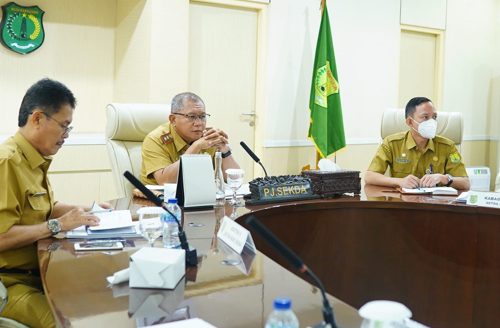 Pingintau.id, Penjabat (Pj) Bupati Musi Banyuasin Drs H Apriyadi melalui Pj Sekretaris Daerah Muba Musni Wijaya SSos MSi, mengikuti rapat koordinasi Pengawasan Pengendalian Inflasi Daerah secara virtual, Selasa (23/8/2022) di Ruang Rapat Serasan Sekate.