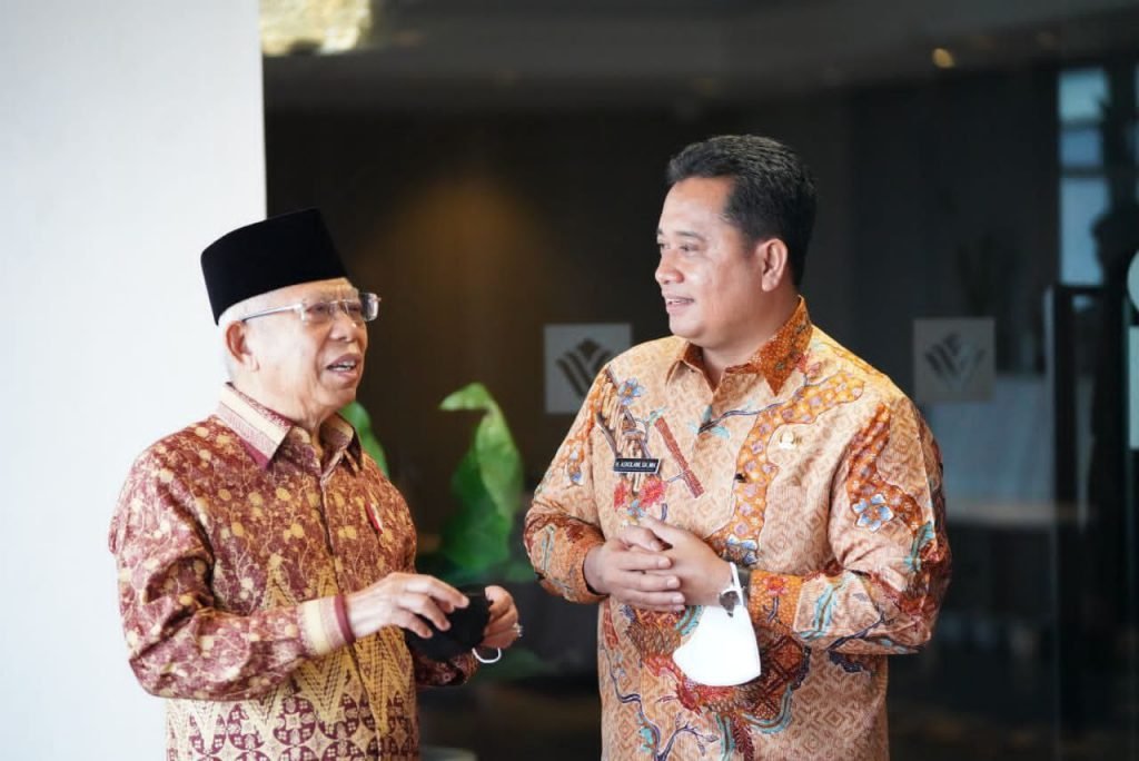 Pingintau.id – Bupati Banyuasin, H. Askolani SH., MH berbincang penuh keakraban dengan Wakil Presiden RI, Prof. Dr. KH. Ma’ruf Amin seusai peresmian Pembukaan Sidang Pleno XlX Asosiasi Fakultas Ekonomi dan Bisnis Indonesia (AFEBI) dan Halal Indonesia Summit 2022 berlangsung di Hotel Wyndham, Jakabaring Selatan, Kabupaten Banyuasin Provinsi Sumatera Selatan, Rabu (7/9).