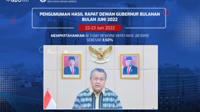 Pingintau.id, Rapat Dewan Gubernur (RDG) Bank Indonesia pada 22-23 Juni 2022 memutuskan untuk mempertahankan BI 7-Day Reverse Repo Rate (BI7DRR) sebesar 3,50%, suku…