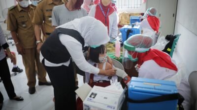 Pingintau.id, Wakil Walikota Palembang Fitrianti Agustinda memantau vaksinasi Covid 19 anak usia 6- 11 tahun …