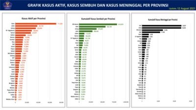 Grafik Kasus Aktif, Kasus Sembuh dan Kasus Meninggal per Provinsi (Update per 12 Agustus 2021)