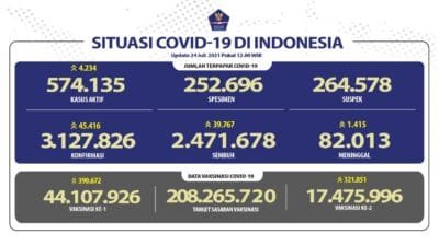 Pingintau.id –Perkembangan penanganan pandemi COVID-19 per 24 Juli 2021 secara nasional, angka kesembuhan harian bertambah…