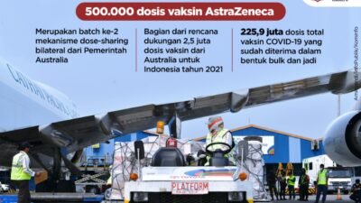 Tahap ke-51: 500 Ribu Vaksin AstraZeneca Bantuan Pemerintah Australia Kembali Tiba di Tanah Air