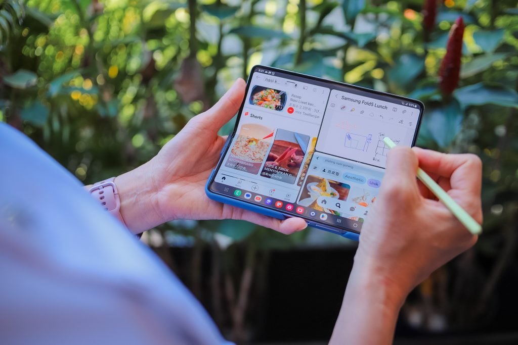 Sebagai chef dan pemilik usaha, Chef Narae menghabiskan sebagian besar waktunya di perjalanan dan beraktivitas di dapur. Maka dari itu, ia butuh smartphone yang compact namun tetap memiliki performa andal untuk menunjang produktivitasnya tanpa perlu buka laptop di tengah mobilitasnya yang tinggi. Chef Narae sangat suka dengan Galaxy Z Fold5 yang menurutnya begitu praktis untuk digunakan. Salah satu fitur favorit Chef Narae di Galaxy Z Fold5 adalah Multi-Window dan Taskbar.