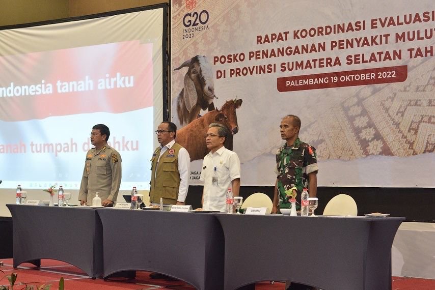 Kejadian PMK di wilayah Sumsel bermula dari adanya lalu lintas hewan masuk ke kota Lubuklinggau pada bulan Mei 2022, kemudian menjangkit ke 8 kabupaten/kota lainnya (Musi Rawas, OKI, Palembang, Lahat, Banyuasin, Pali dan Muaraenim). Berkat kerjasama dan koordinasi yang terjalin dalam satgas penanganan PMK di Sumsel, kejadian PMK di Sumsel bisa dikendalikan.
