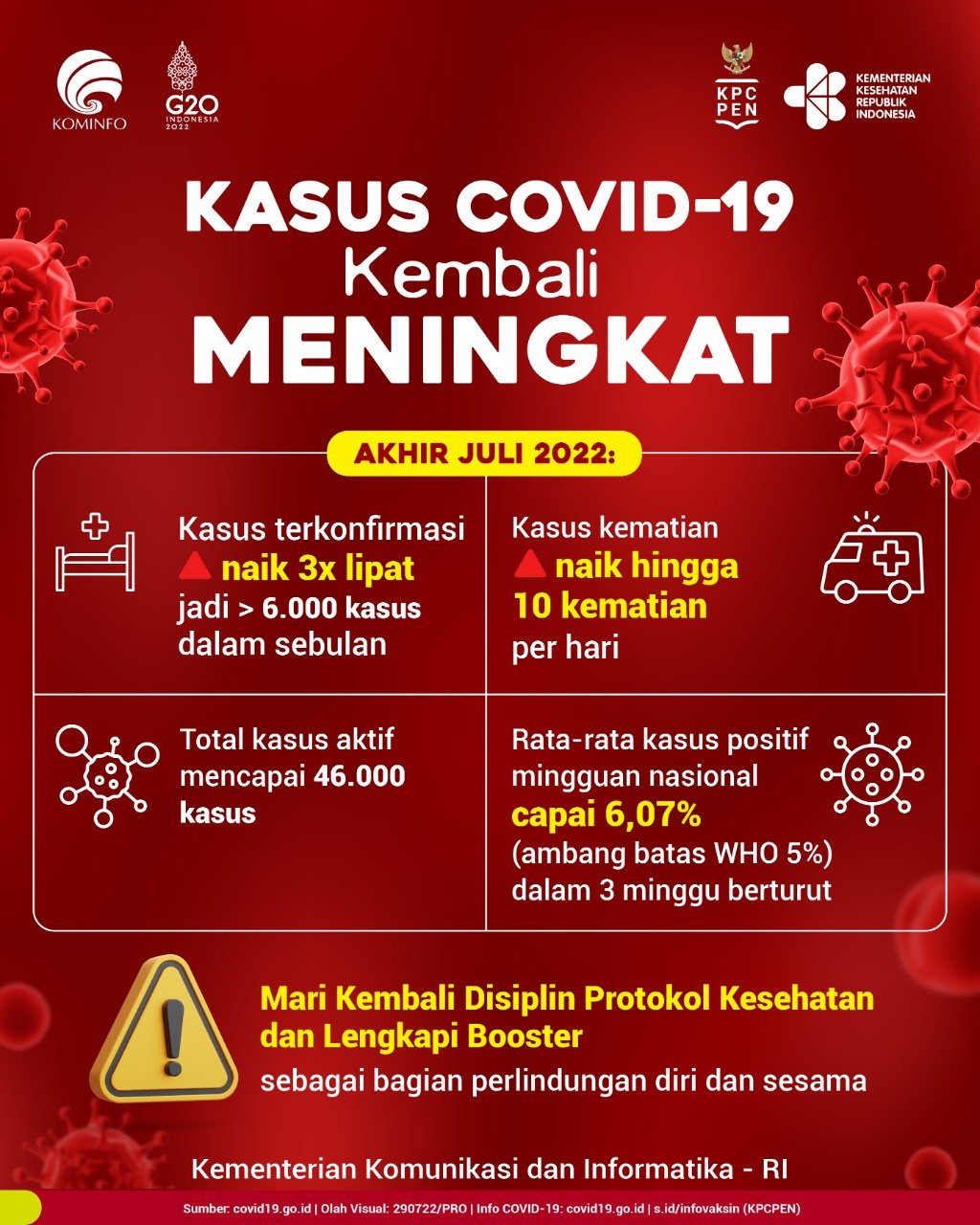 Sikapi situasi ini dengan mari kembali disiplin protokol kesehatan dan lengkapi vaksinasi COVID-19 dengan booster sebagai bagian perlindungan diri dan sesama.