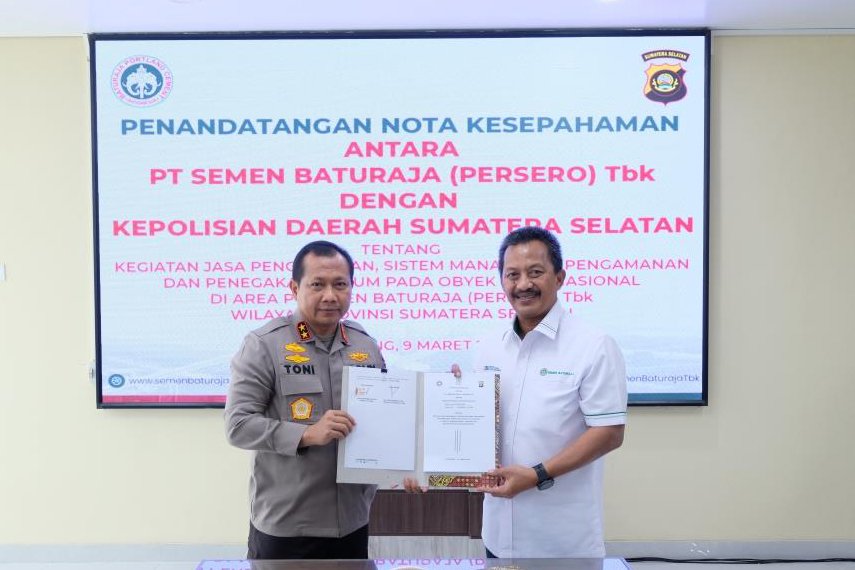 Pingintau.id, Dalam upaya menjaga situasi keamanan yang kondusif dalam kegiatan operasional dan Objek Vital Nasional perusahaan, PT Semen Baturaja (Persero) Tbk (SMBR) menandatangani nota kesepahaman dengan Kepolisian Daerah Sumatera Selatan pada Rabu (09/03) di Mapolda Sumsel.